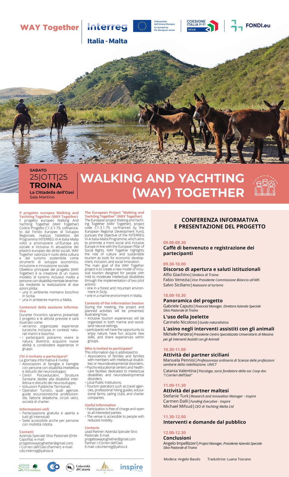 L'obiettivo è quello di promuovere un nuovo modello di turismo inclusivo rivolto principalmente a soggetti con disabilità mentale lieve/media in un ambiente montano in Sicilia e in un ambiente marino a Malta.
